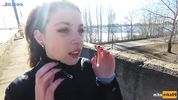 Сученька была в хорошем настроении и согласилась отсосать под мостом знакомому парню