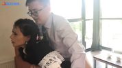 Описание:Очкастый ботаник привел домой подружку, чтобы вместе позаниматься и, как бы невзначай, потихоньку полез к ней в трусишки. Девица немножко построила из себя девочку-целочку, но быстро раздвинула ножки, взяла за щеку хуй и позволила очканавту нализать ей побритую письку. А потом и сама взгромоздилась на его болт, направив ладошкой хуец прямо в свою худенькую изящную жопку. Вот такая вот скромница парню попалась!