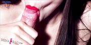 Ярко-красные губки нежно ласкают хуй, добывая ротиком густейшую сперму