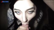 Татуированная девица с колечком в носу просто шикарно сосёт чей-то хуй