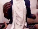 Арабка в хиджабе покорно сосёт необрезанный хуй и получает сперму неверного в рот