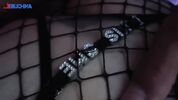 Брюнетка в очках и костюме "секси" (юбка шотландка, белые гетры) ебется с ...